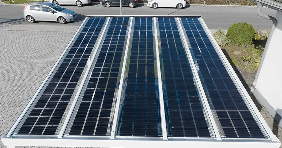 Der Carport wird nicht nur als Schutz für Ihr Auto genutzt, sondern gleichzeitig auch zur aktiven Solarstromerzeugung.